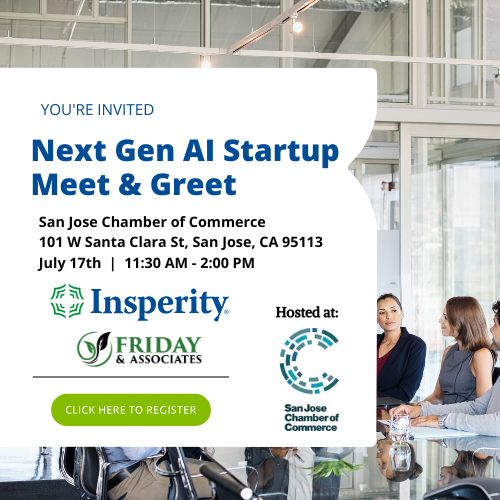 Sponsored by Insperity and FRIDAY & Associates LLC, hosted by the San Jose Chamber of Commerce. Both members and nonmembers are invite to Connect with the Future of AI.