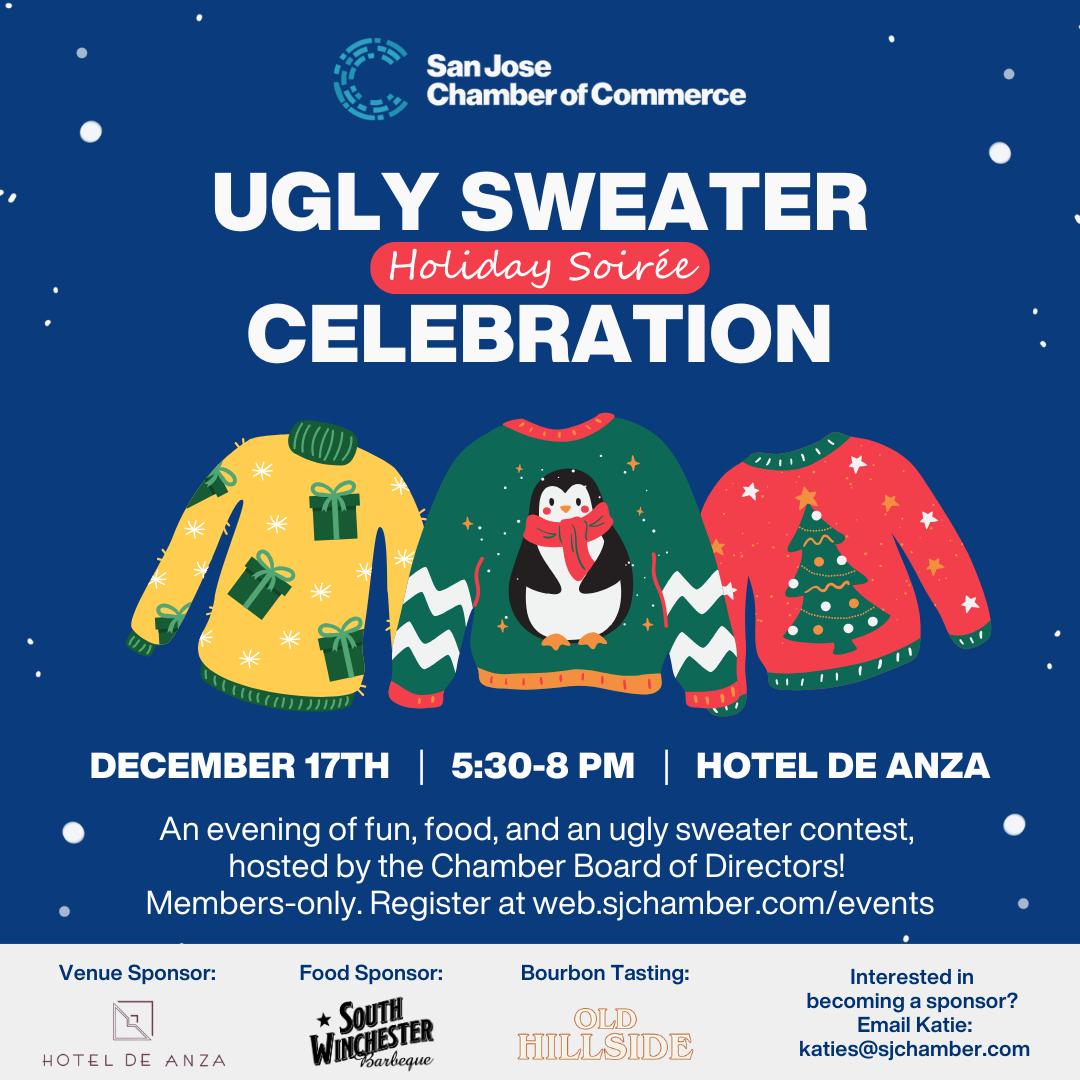 Join us for a festive evening of connection and celebration as we kick off the Chamber’s 140th anniversary year and show appreciation for our members at our annual Holiday Soirée — Ugly Sweater Edition!