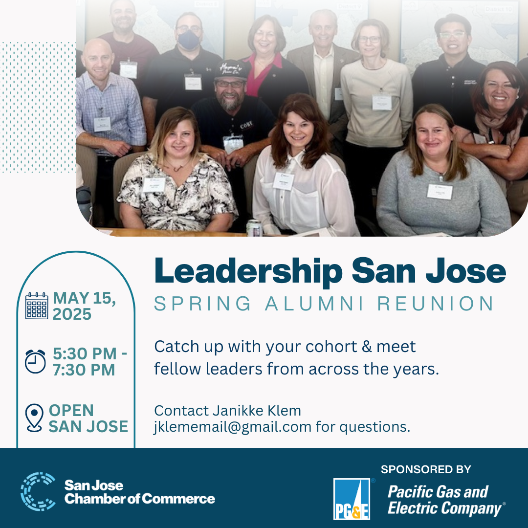 Join fellow Leadership San Jose alumni for an evening of connection and conversation at our Spring Alumni Reunion, sponsored by PG&E. Whether you're looking to catch up with your cohort or meet fellow leaders from across the years, this is your chance to celebrate the impact of LSJ and strengthen your network.