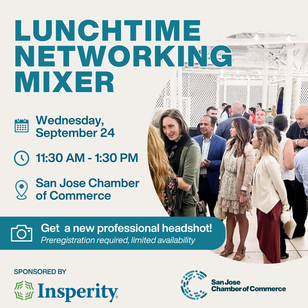 Connect with local professionals at our Lunchtime Headshot Networking Mixer, proudly sponsored by Insperity. Enjoy great conversation, build new relationships, and make the most of your midday break. Participants who sign up in advance will receive a free professional headshot on a space available basis! This event is open to both members and non-members—bring a friend and grow your network.