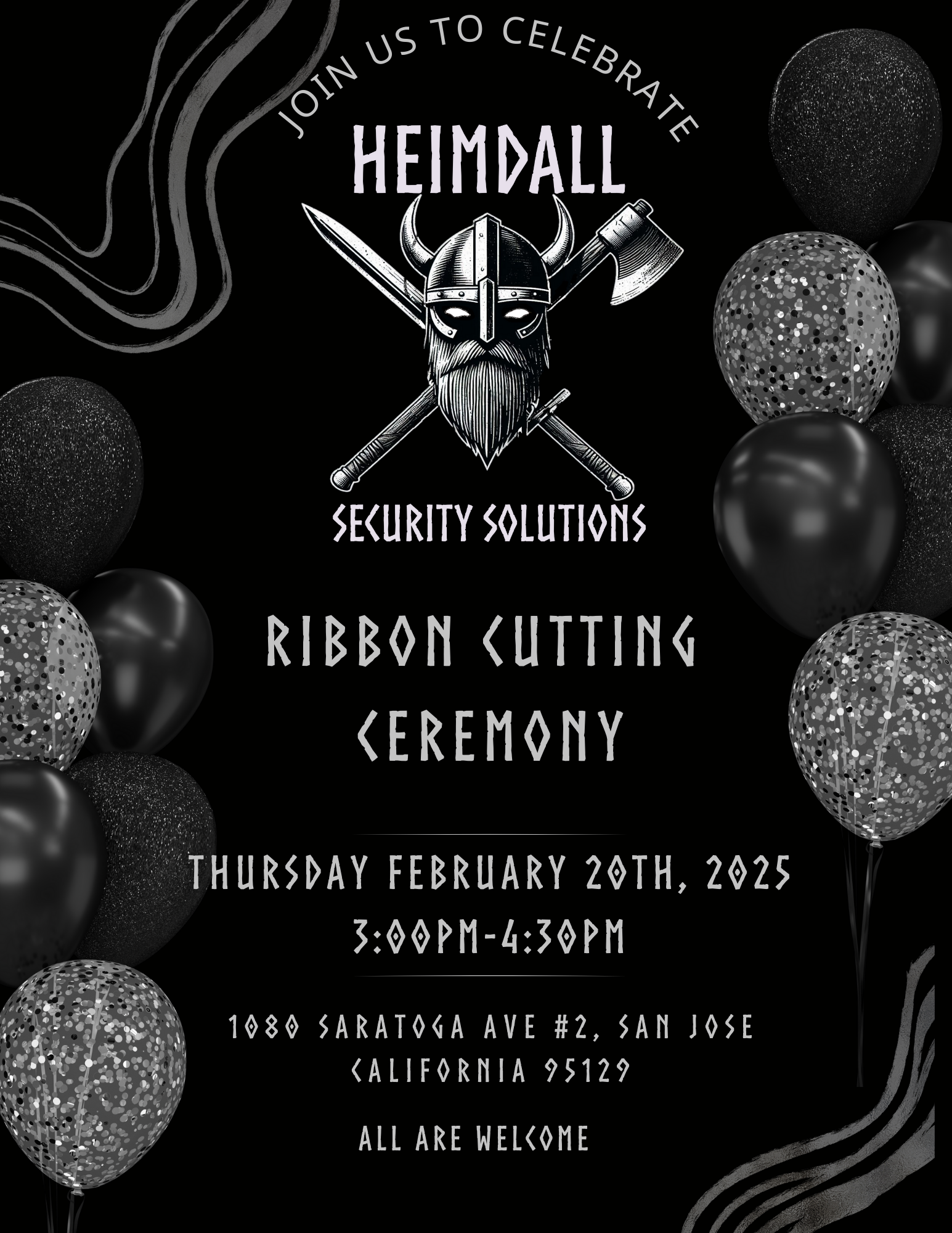Join us for a Ribbon Cutting for Heimdall Security Solutions: Heimdall Security Solutions, offers reliable private security services across San Jose and Santa Clara County, CA and the nearby areas. If you’re looking for event security, corporate security, or security patrol services, Heimdall Security Solutions is ready to keep you safe and secure.