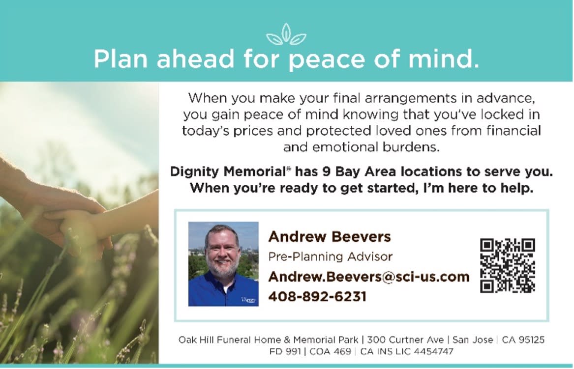 When you pre-plan funeral, cremation, and/or cemetery needs for yourself or family members with Dignity Memorial through any of our 9 Bay Area locations, Chamber Members receive a 10% discount on all products and services. Just mention your Chamber of Commerce affiliation to your advisor for the discount to apply.